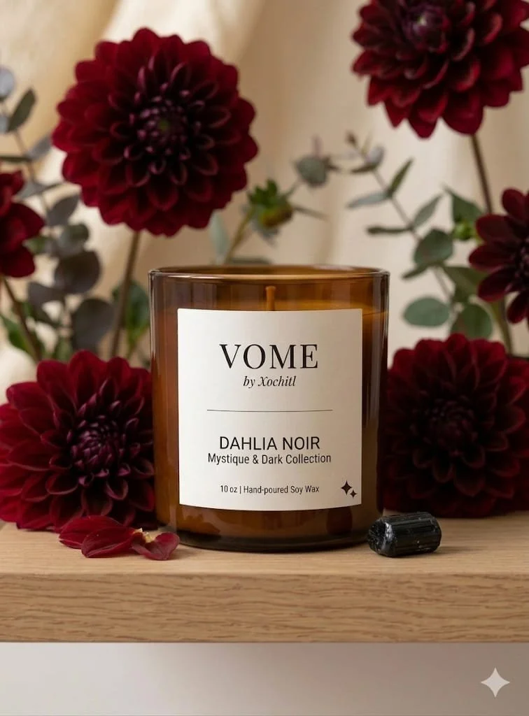Notas: Dahlia negra, pétalos de rosa nocturna y un fondo de almizcle aterciopelado.